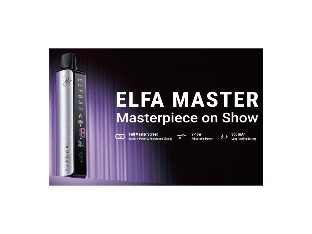 Elektronická cigareta ELFA Master Pod z dílny Elf Baru potěší širokou škálu vapingových nadšenců. Zařízení ELFA Master Vás zaujme svým pohodlným ergonomickým zpracováním, postranním displejem, integrovaným monočlánkem o kapacitě 850mAh, USB-C nabíjením, nastavitelným výkonem 9 - 18W, ale hlavně kompatibilností s předplněnými cartridgemi ELFA. Právě tyto předplněné cartridge jsou jedny z nejoblíbenějších uzavřených POD systémů na světě a s ELFA Master je jejich chuť vyladěna na maximum. V této sadě naleznete baterii ELFA Master a prázdnou znovu plnitelnou cartridge o odporu 1,1ohm. Nyní už Vám nic nebrání vychutnat si váš oblíbený liquid v té nejlepší společnosti.