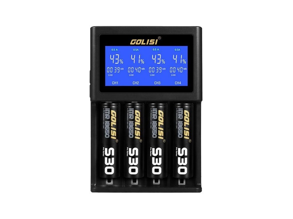 Čtyř slotová nabíječka pro monočlánky s 2A rychlím nabíjením a LCD displejem, kterou lze propojit přes micro USB kabel k počítači nebo za pomocí adaptéru do klasické zásuvky.