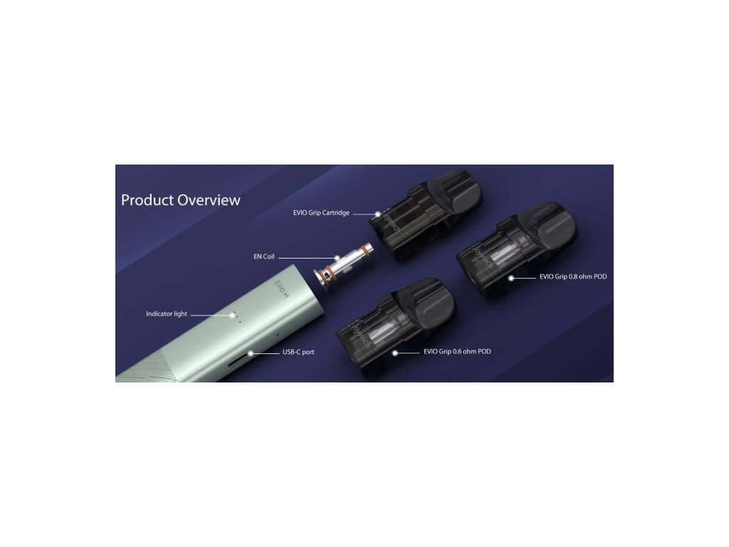 Elektronická cigareta Joyetech EVIO M Pod je novým přírůstkem do rodiny Joyetech EVIO s kapacitou cartridge 2,8ml, dobíjecí baterií 900mAh s indikátorem stavu nabití a automatickým výkonem až 20W. Tento všestranný podsystém je navržený tak, aby byl dokonalým společníkem pro každodenní vapování. Vyměnitelná cartridge (POD) s vestavěným atomizerem o odporu 0,8ohm pojme až 2,8ml liquidu. K dispozici je také cartridge o odporu 0,6ohm nebo s vyměnitelným atomizerem řady EN.