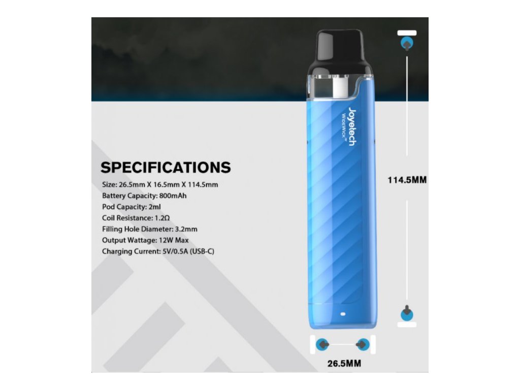 Druhá řada oblíbené nízkonákladové elektronické cigarety s nejpokročilejší technologií WideWickTM od společnosti Joyetech. Díky této technologii je žhavící cívka omotána prvotřídní bavlnou ze všech stran, což v praxi zaručí nulové prskání nebo protečení. Každé potáhnutí je tak plné té nejlepší chuti a dry hity jsou minulostí. Integrovaný monočlánek o kapacitě 800mAh disponuje LED indikátorem stavu nabití, automatickým výkonem až 12W a USB-C portem pro rychlé nabíjení. Cartridge (POD) s pohodlným vrchním plněním o objemu 2ml obsahuje integrovanou žhavící hlavu o odporu 1,2ohm.