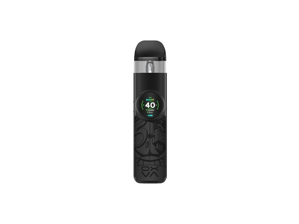 Součástí zařízení je velkokapacitní 4ml cartridge, která umožňuje více než 15 naplnění a disponuje 5vrstvou ochranou proti úniku, což zaručuje spolehlivý a čistý provoz. Přehledný 0,85" barevný displej poskytuje snadný přístup ke všem nastavením zařízení a zobrazuje důležité informace. Integrovaná 1500mAh baterie s rychlým nabíjením 5V/2A zajišťuje dlouhou výdrž a rychlé doplnění energie. Kromě toho zařízení umožňuje nastavení výkonu v rozmezí 5–40 W, díky čemuž si každý uživatel může přizpůsobit zážitek z vapování podle svých preferencí.