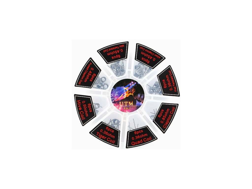 Sada 8 druhů předmotaných nízkoodporových kanthalových spirálek pro DIY fajnšmekry.