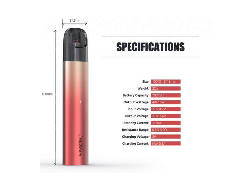 Smoktech SOLUS je ideální elektronická cigareta s POD systémem ve stylu ,,Pocket´´(kapesní velikost). Vyměnitelná cartridge (POD) z PCTG materiálu je vybavena žhavící hlavou Meshed o odporu 0,9ohm a pojme až 3ml liquidu. Díky magnetickému propojení s baterií lze cartridge jednoduše vyjmout a doplnit oblíbeným liquidem. Kvalitní hliníková konstrukce těla baterie disponuje vestavěným monočlánkem o kapacitě 700mAh, LED indikátorem stavu nabití a bočním přívodem vzduchu. Tato inovace je vhodná pro kouření ve stylu MTL, tedy klasického šlukování pusa-plíce