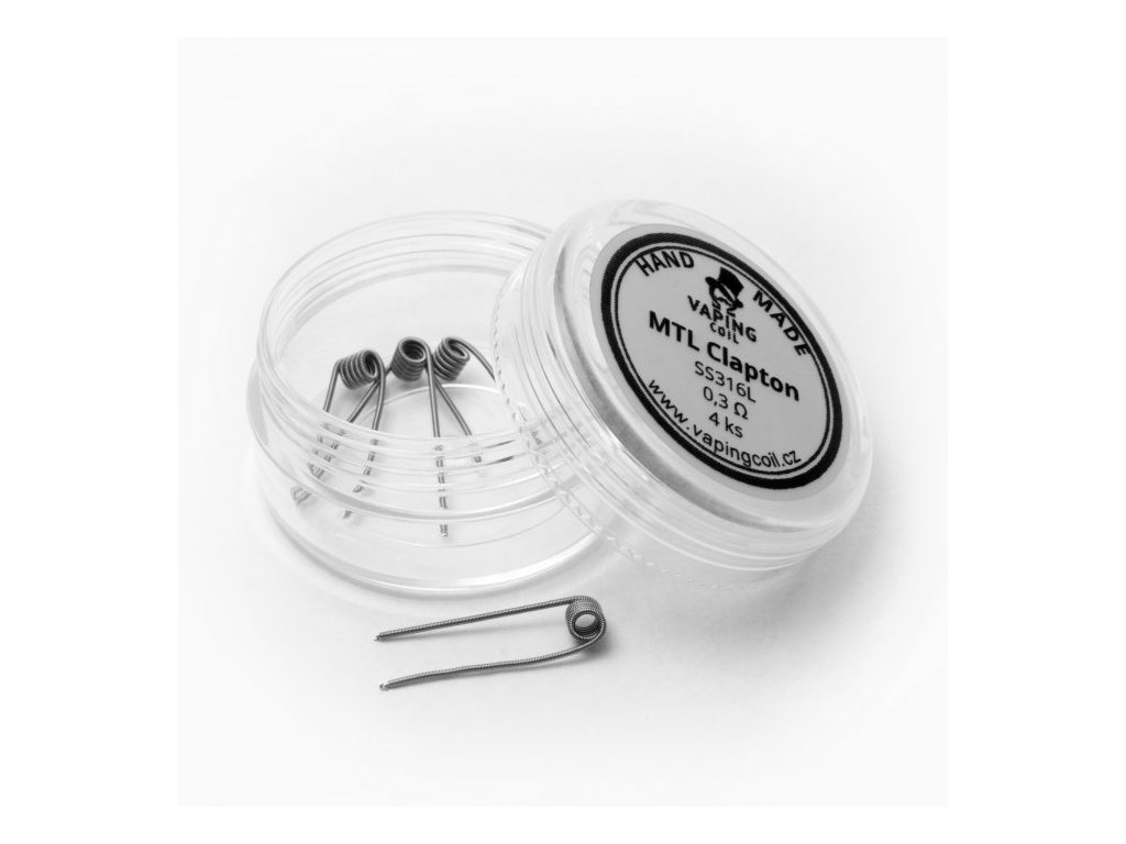 Ručně vyráběné spirálky VapingCoil v provedení Clapton o odporu 0,3Ω se vyznačují zejména skvělým podáním chuti. Odpor: cca 0,3Ω, Vnitřní průměr: 2 mm, Materiál: SS316L, Obsah balení: 4 kusy