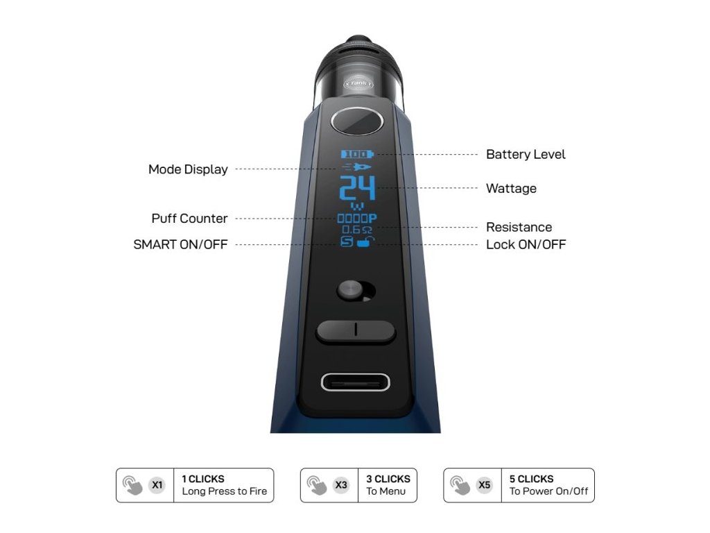 Vaporesso GTX ONE PRO je nejnovější přírůstek do rodiny GTX zařízení a představuje zásadní vylepšení oproti svému předchůdci GTX One. Tento model nabízí robustní, ale přitom kompaktní tělo s měkkým, protiskluzovým povrchem, který perfektně padne do ruky. Kombinace elegantního designu, intuitivního ovládání a výkonného čipu AXON s technologií Pulse z něj dělá ideální volbu pro široké spektrum uživatelů – od začátečníků až po náročné vapery hledající spolehlivý každodenní pod kit. Zásadním vylepšením je vestavěná baterie s kapacitou 3000mAh, což je o 50% více než u původního modelu. Ve spojení s inteligentním řízením výkonu tak vydrží na jedno nabití až tři dny běžného používání. Výkon je nastavitelný v rozmezí 5–40W, přičemž čip AXON poskytuje konzistentní výkon a rychlou odezvu. Zařízení je vybaveno přehledným 0,87″ OLED displejem, který zobrazuje všechny klíčové údaje – výkon, odpor, napětí, počet potahů i stav baterie. Nechybí ani bezpečnostní zámek tlačítka proti nechtěnému spuštění například při přenášení v kapse. Dalším zásadním prvkem je nový Xtank T s horním plněním, horním airflow a SSS ochranou proti protékání a využívá osvědčené žhavicí hlavy řady GTX. Díky technologii COREX™ (Morph-Mesh spirálka + mikrovláknová bavlna) se výrazně prodlužuje životnost hlav a zajišťuje se maximální chuťový projev. GTX ONE PRO je dostupný v šesti atraktivních barevných variantách – od elegantní černé a stříbrné až po odvážnou červenou, modrou, růžovou a hnědou. Styl, který osloví různé typy zákazníků.